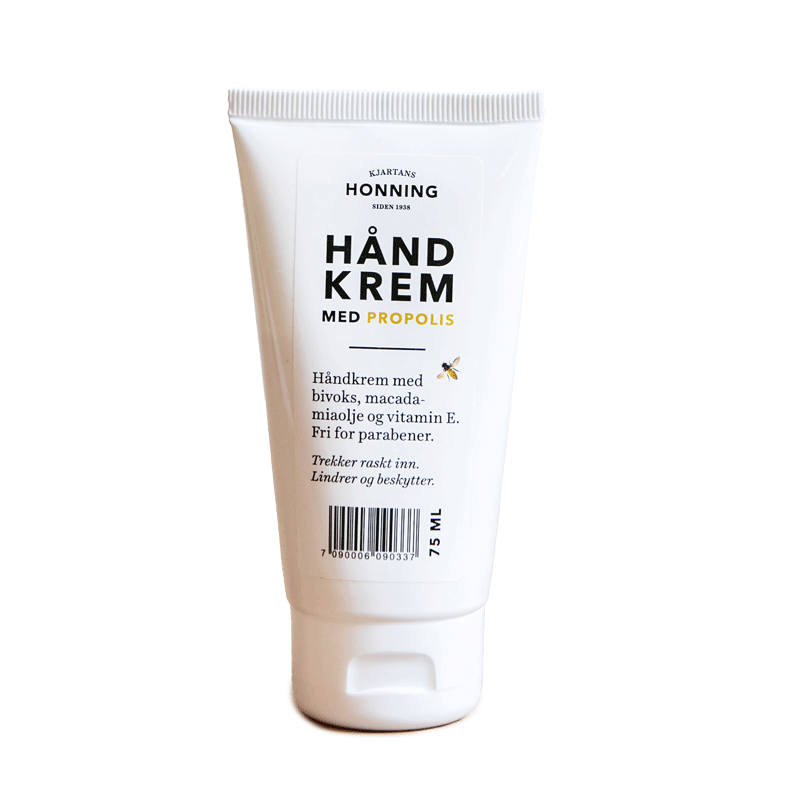 Kjartans Håndkrem med propolis gir pleie og beskyttelse til tørre hender. Propolis er et naturlig produkt fra bier, kjent for sine antibakterielle og helbredende egenskaper. Det inneholder også rike mengder antioksidanter, som kan hjelpe til med å bekjempe frie radikaler og styrke hudens barriere.